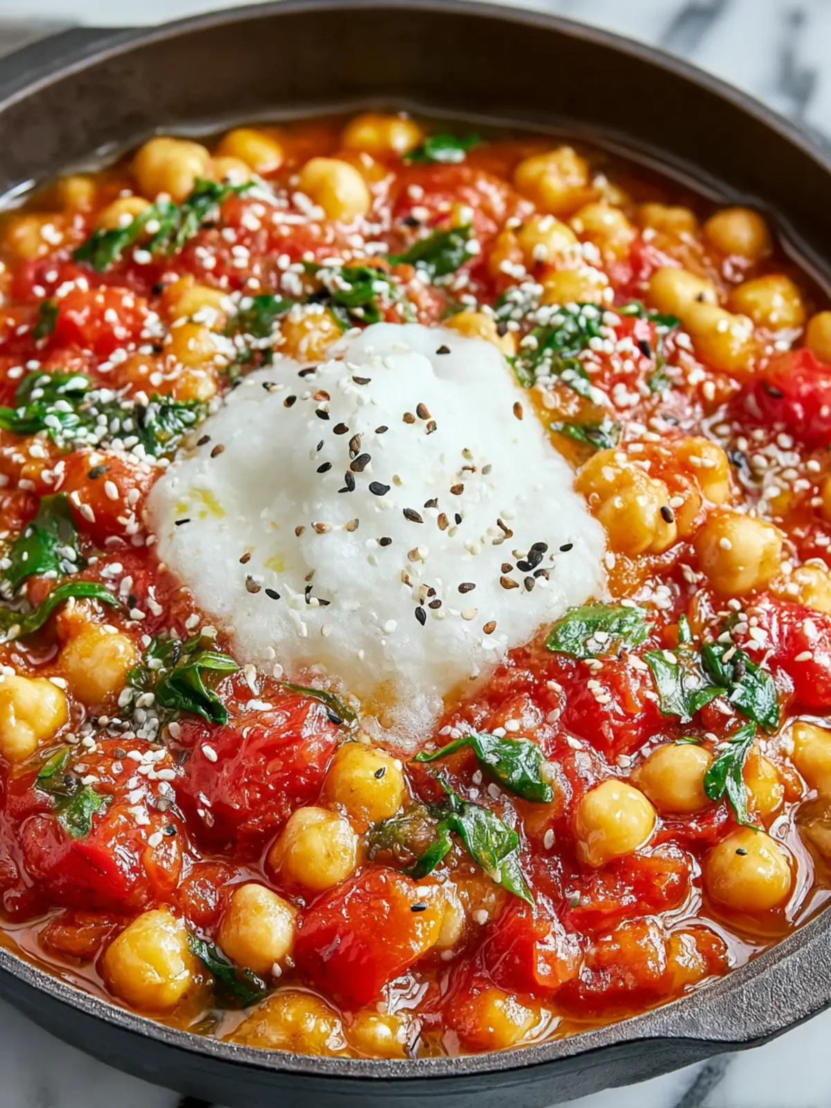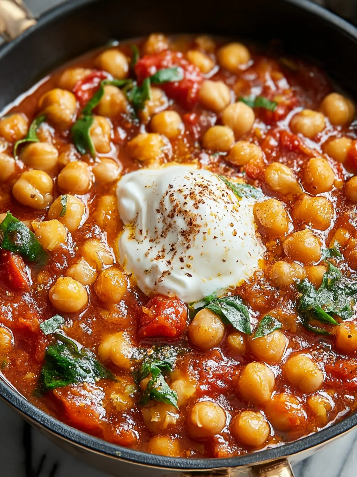 A hearty chickpea stew with tomatoes, spices, and herbs. Perfect for a comforting meal.