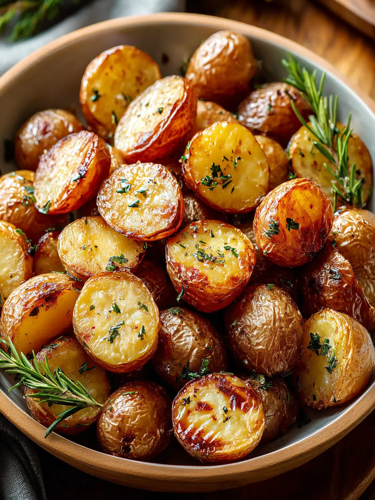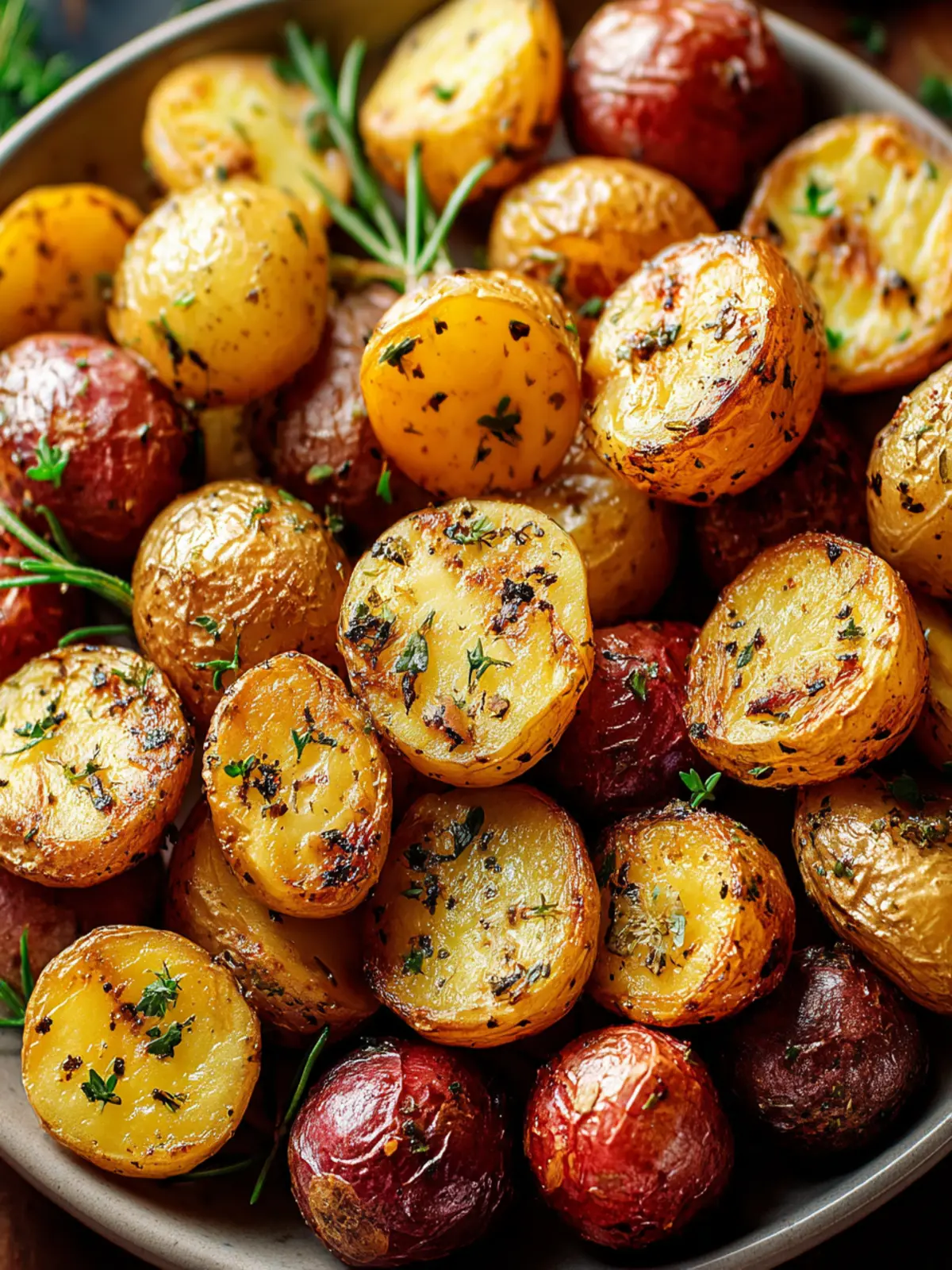 Deliciously roasted baby potatoes seasoned with herbs and spices.