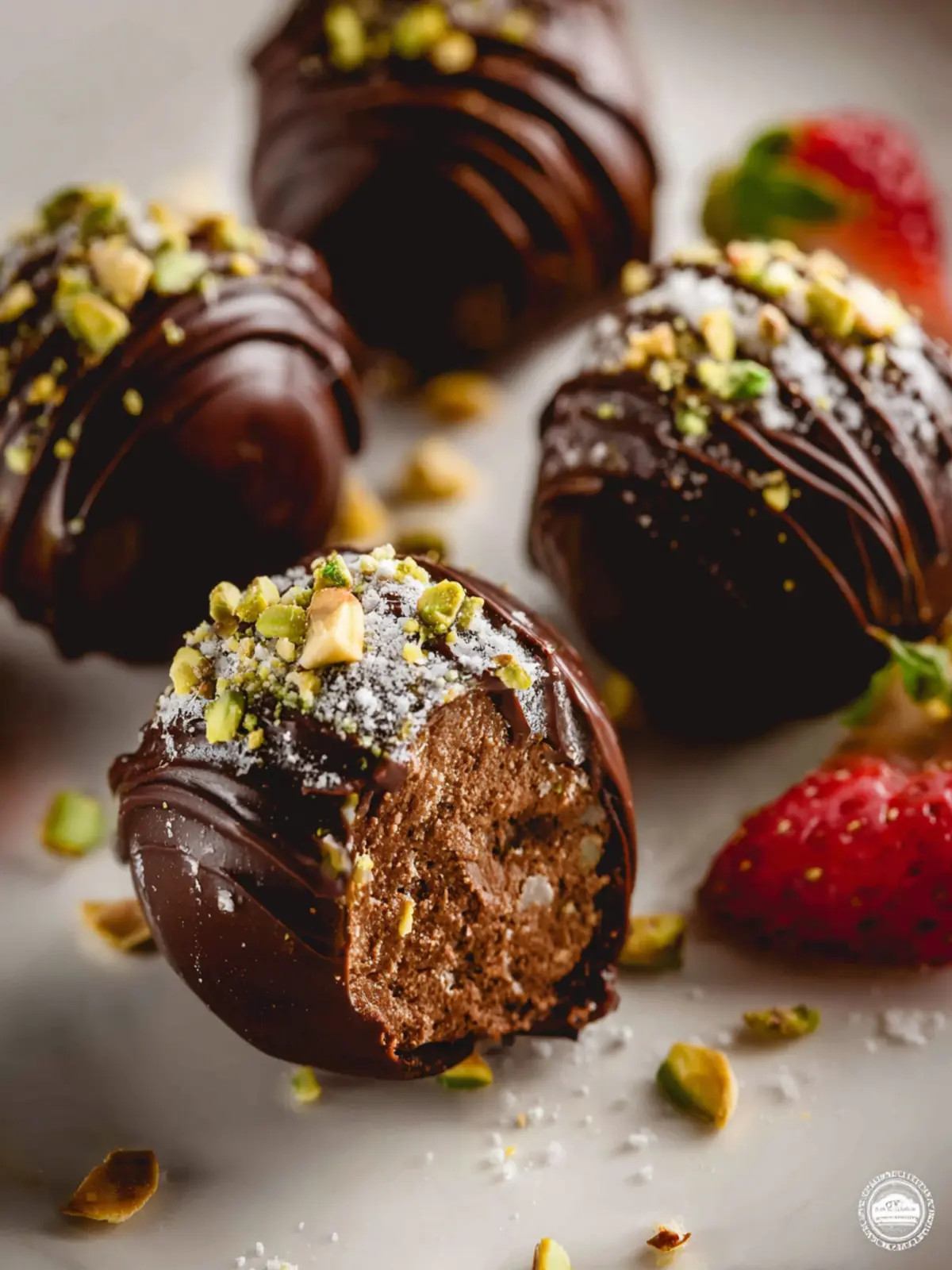 Garnishes: Consider rolling your truffles in crushed pistachios or coconut flakes for an added texture and flavor burst. Edible gold leaf can also elevate their elegance, making them perfect for special occasions.