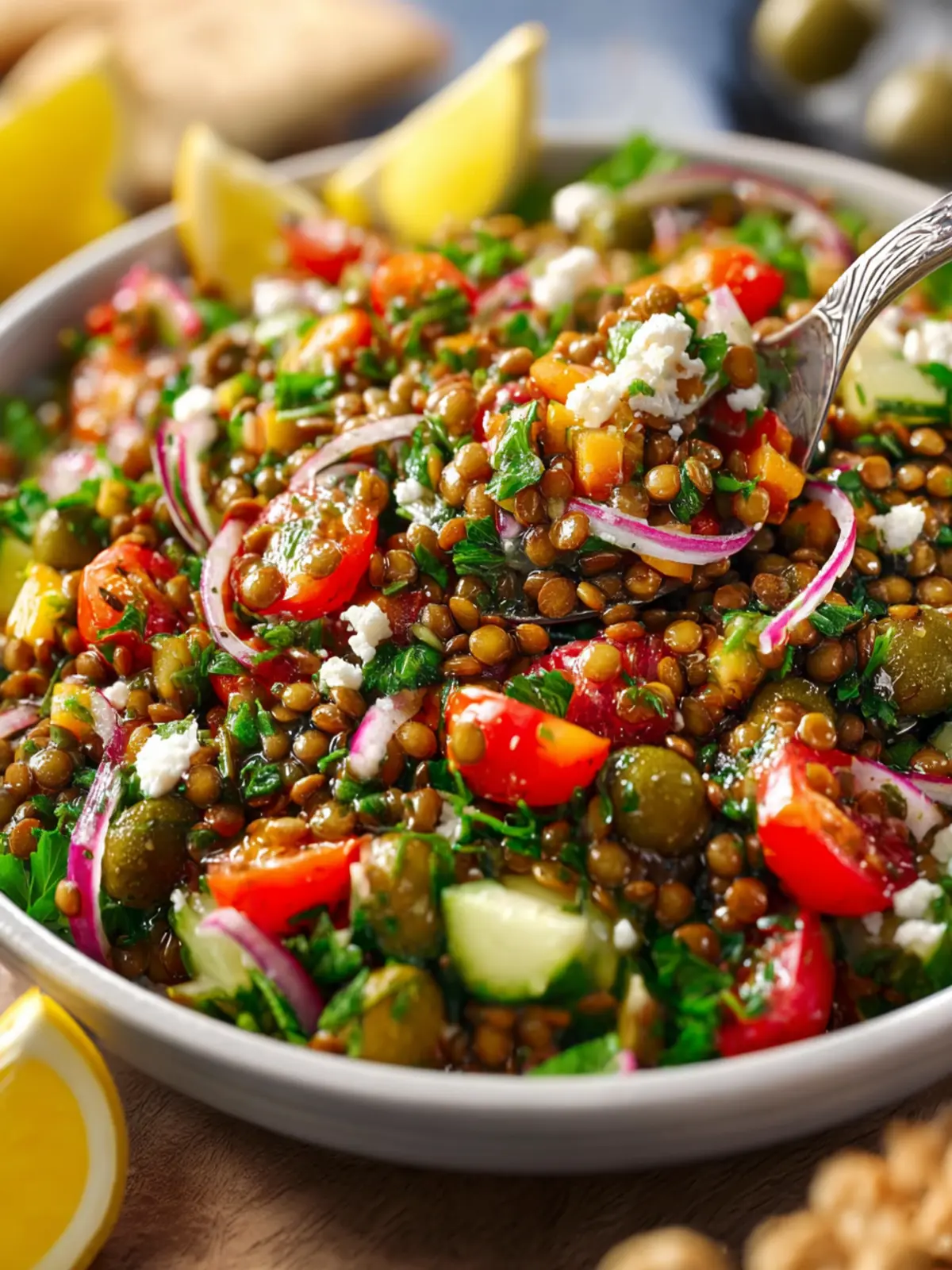 A refreshing Mediterranean lentil salad with a zesty lemon dressing.